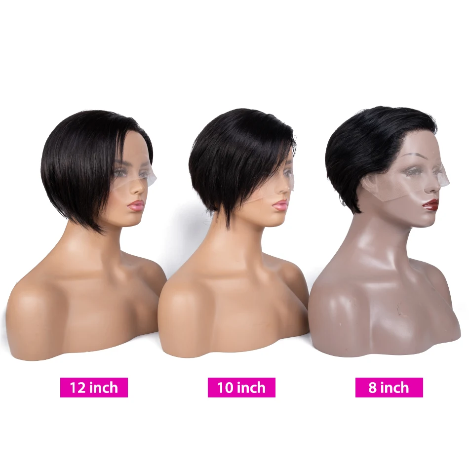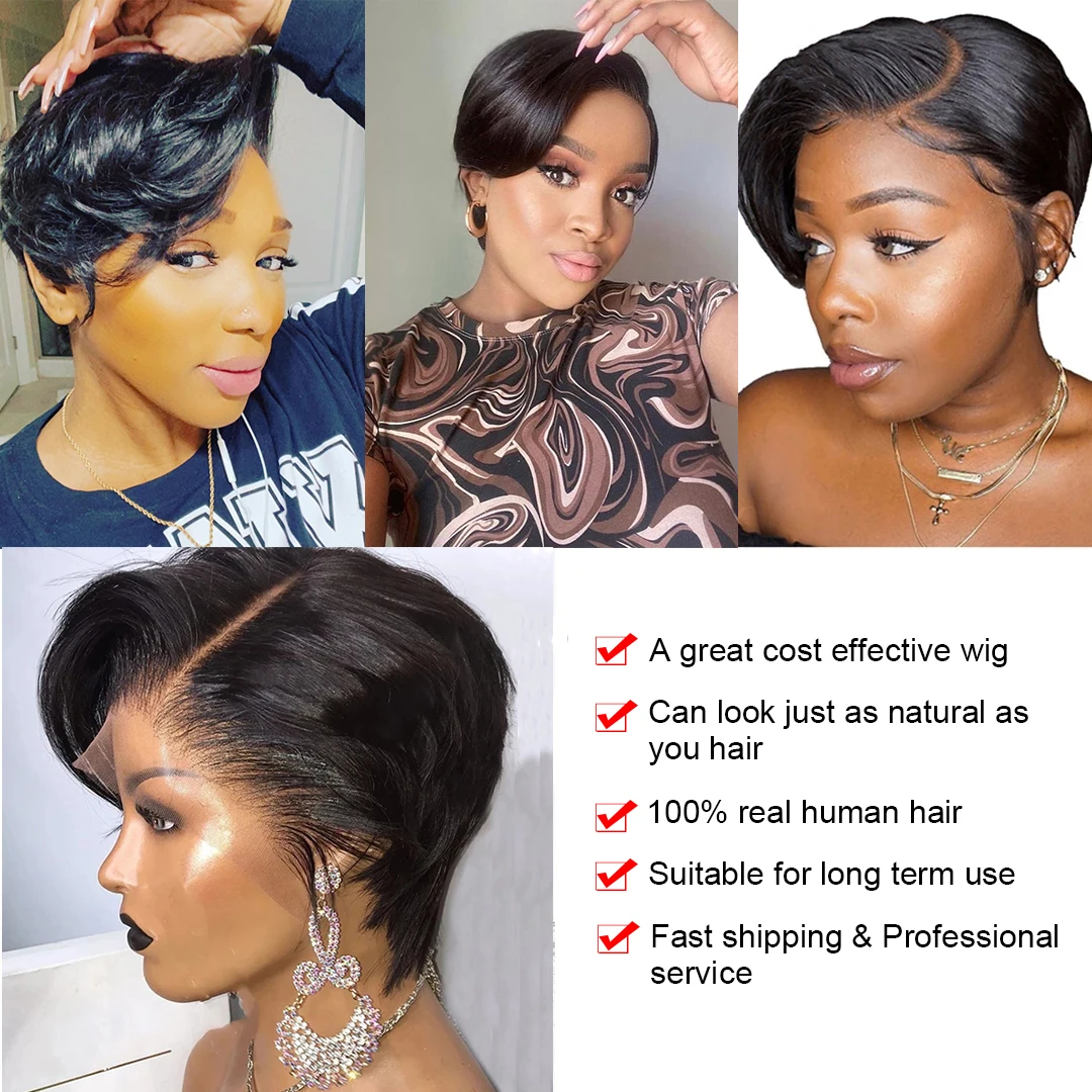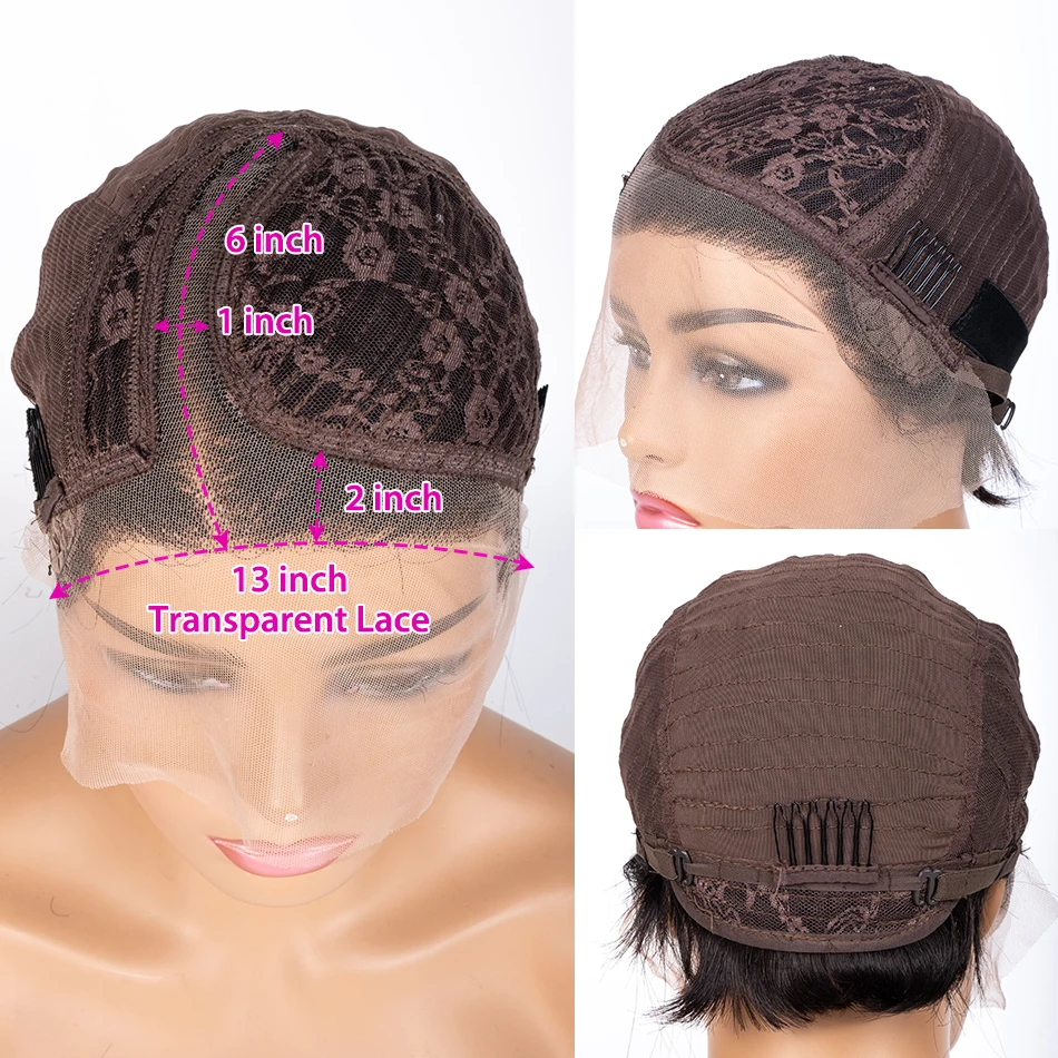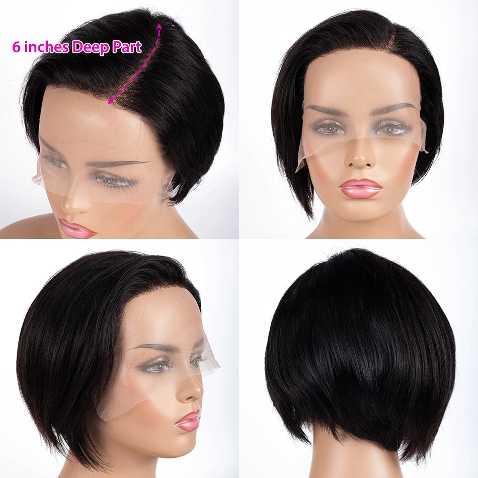 Straight Pixie Cut Wig T Part Lace Front Human Hair Wig Preplucked For Black Women Transparent Lace Short Bob Wig Brazilian Remy